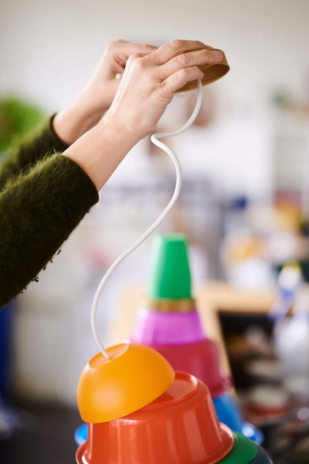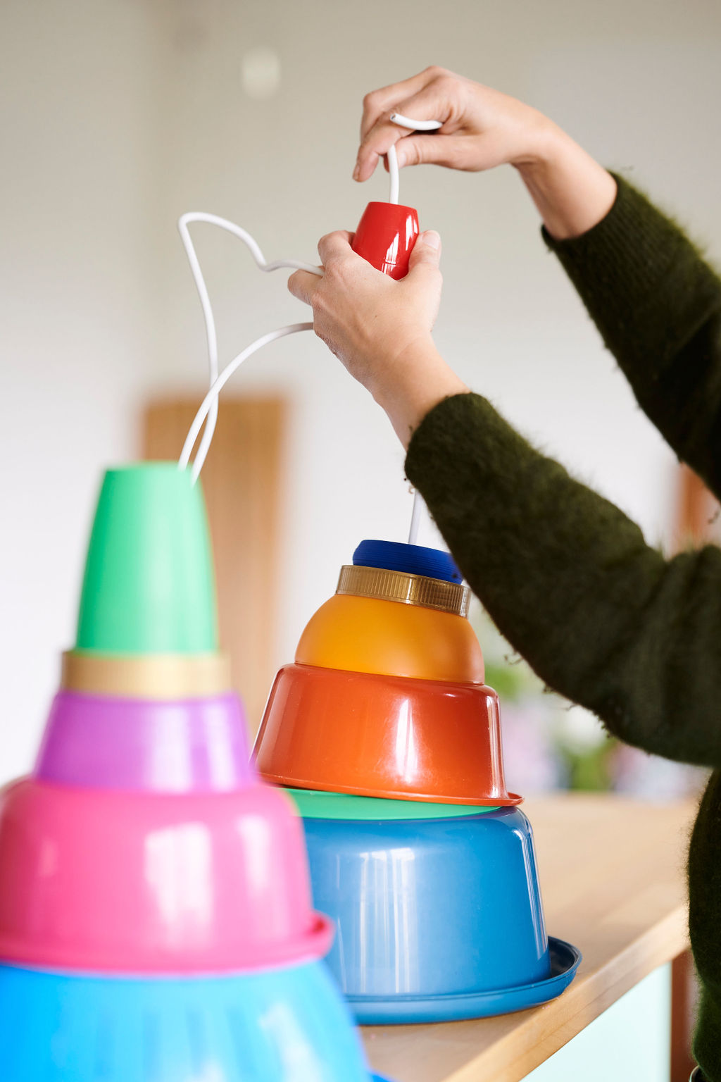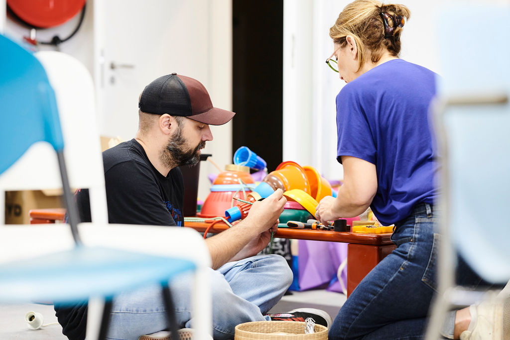 Les Petits Riens reinvent everyday objects with ingenuity. Where others see simple tupperware or bowls, they envision colorful, designer lamps. Their workshop is an experimental space where every object finds a new life.
