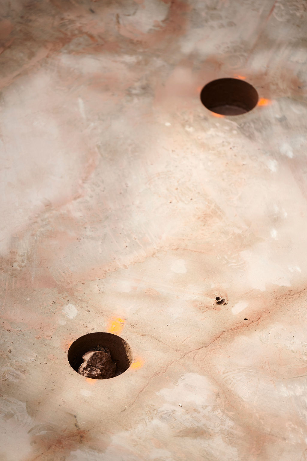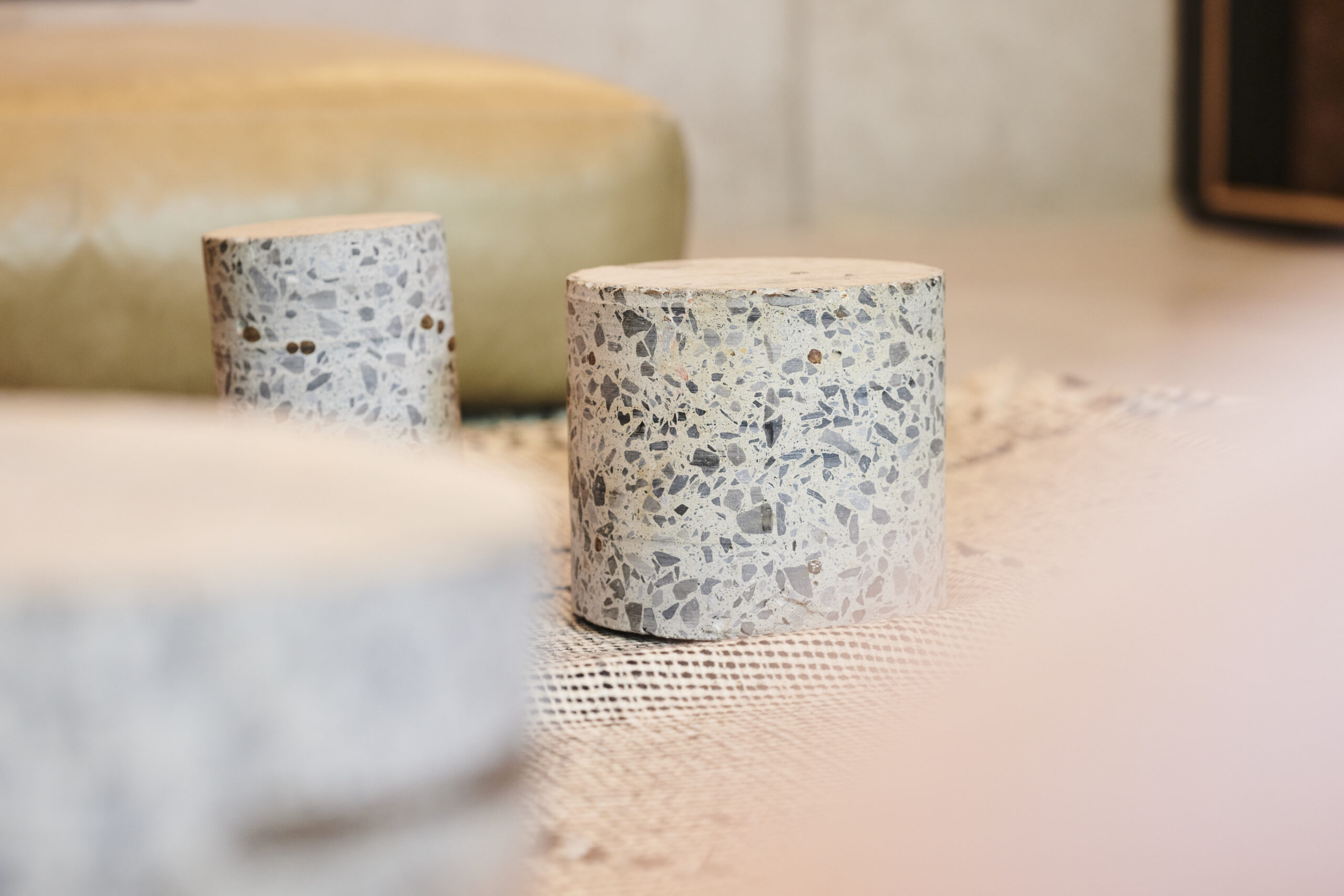 For example, in the Courouble and Printemps projects, we transformed core samples from concrete slabs into tables, giving these materials a new life. This approach allows us to maintain a local and sustainable footprint while reintegrating elements from the original structure, incorporating the concept of temporality.