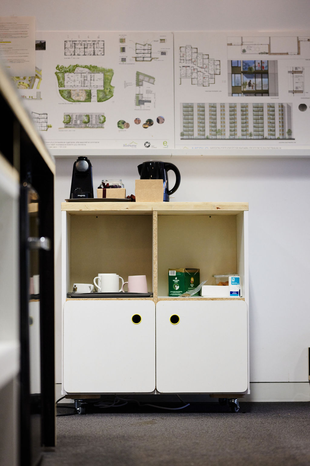 It all starts with a detailed inventory of existing furniture to identify items that can be reused (chairs, armchairs, tables…) and those that require design work. The goal is to recover materials and give them a second life while creating fixed and mobile furniture that meets the space’s needs and those of its users. Nest and Les Petits Riens, two key players in the project, collaborated on sketches combining recovery and innovation, using materials from the construction site, such as CLT panels reconditioned by Timber.