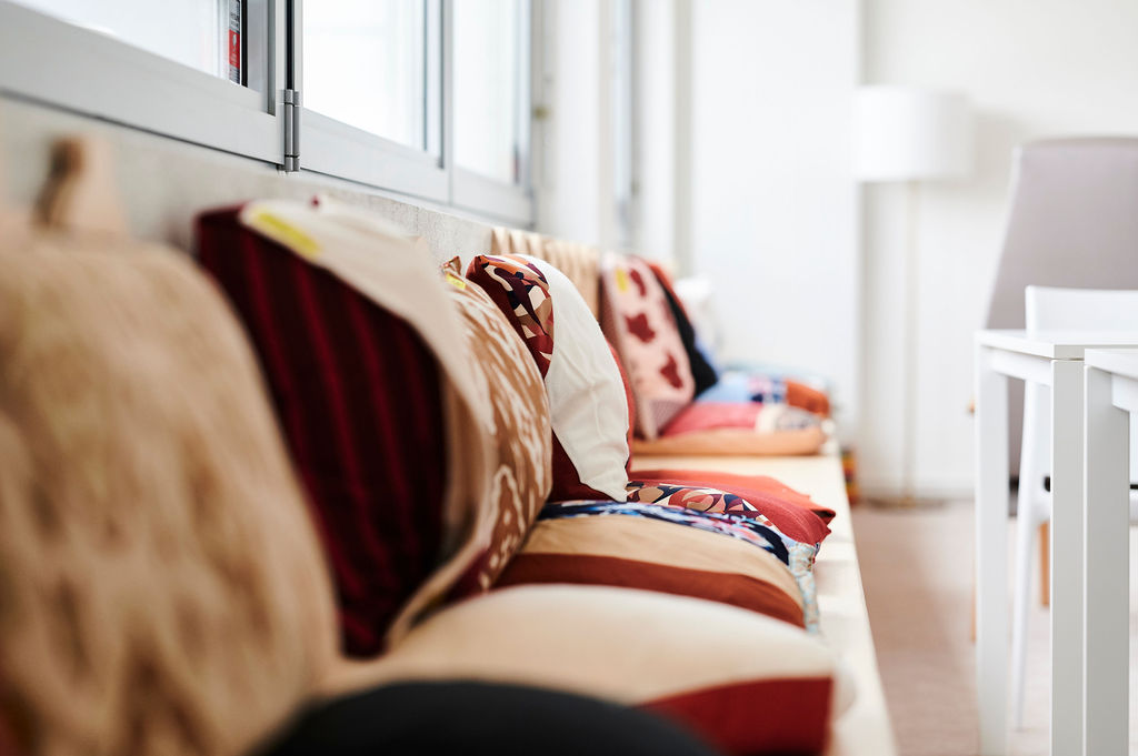For the Van Volxem and Parenté projects, we had the opportunity to collaborate with Les Petits Riens by highlighting their Label Jaune initiative. For Parenté, they created cushions in their workshops using reclaimed textiles. For Van Volxem, they transformed tupperware, cups, and bowls into creative and original lighting fixtures, adding an eco-friendly and playful touch to the project.