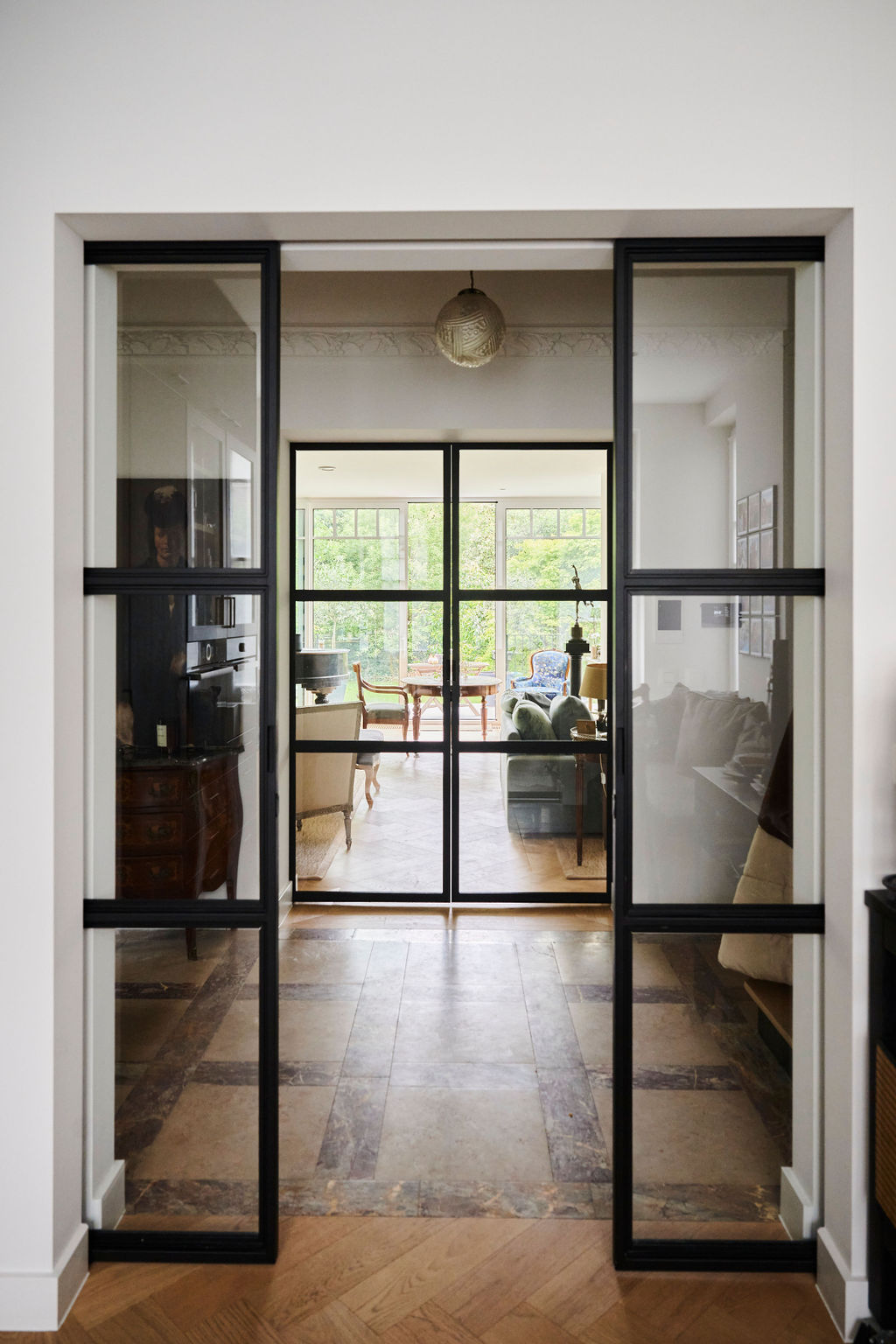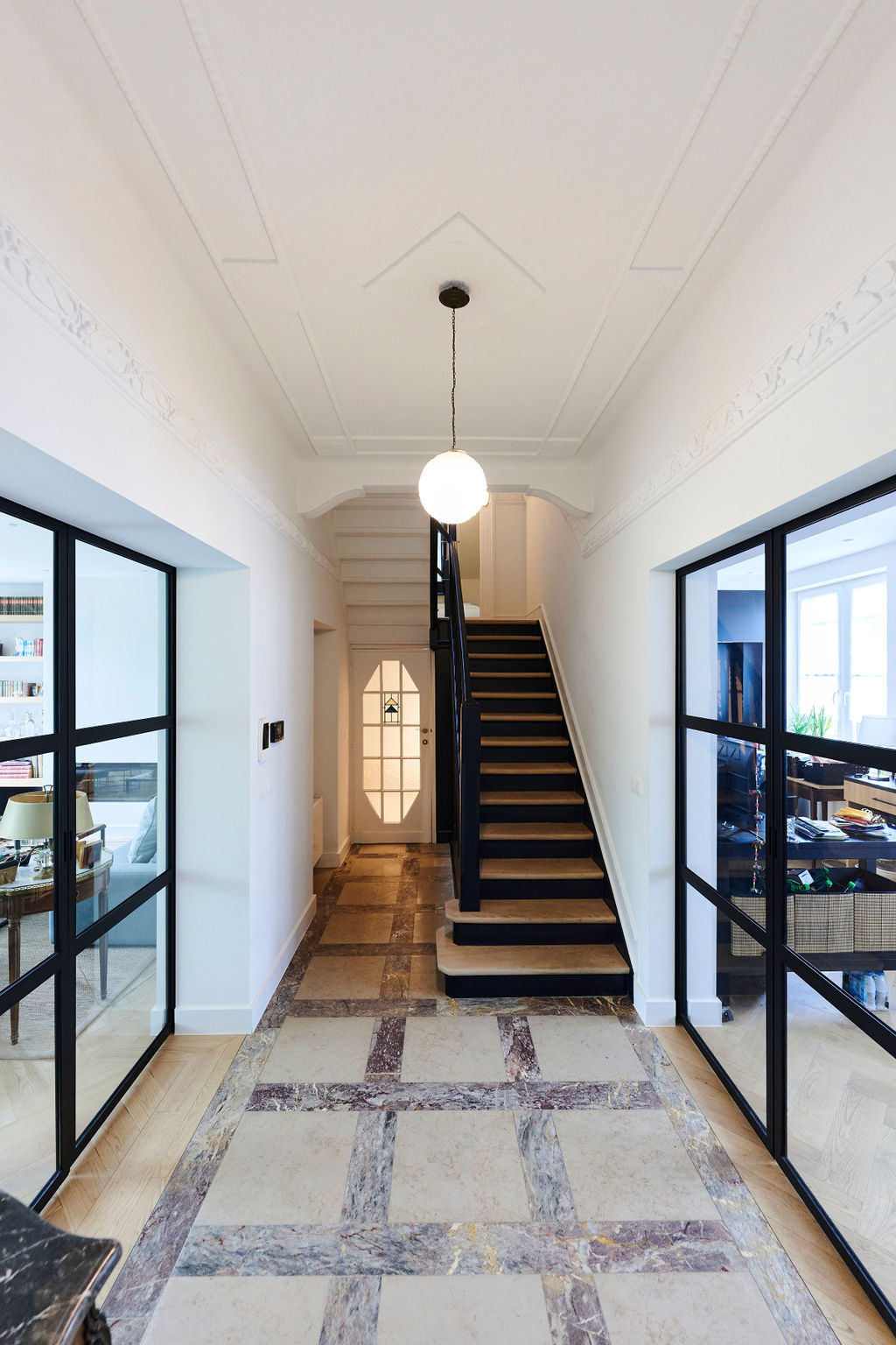 We also restored high-quality materials, such as the natural stone flooring and the molded woodwork of the existing doors and stairs, carefully restoring these elements to their original splendor and ensuring their longevity.