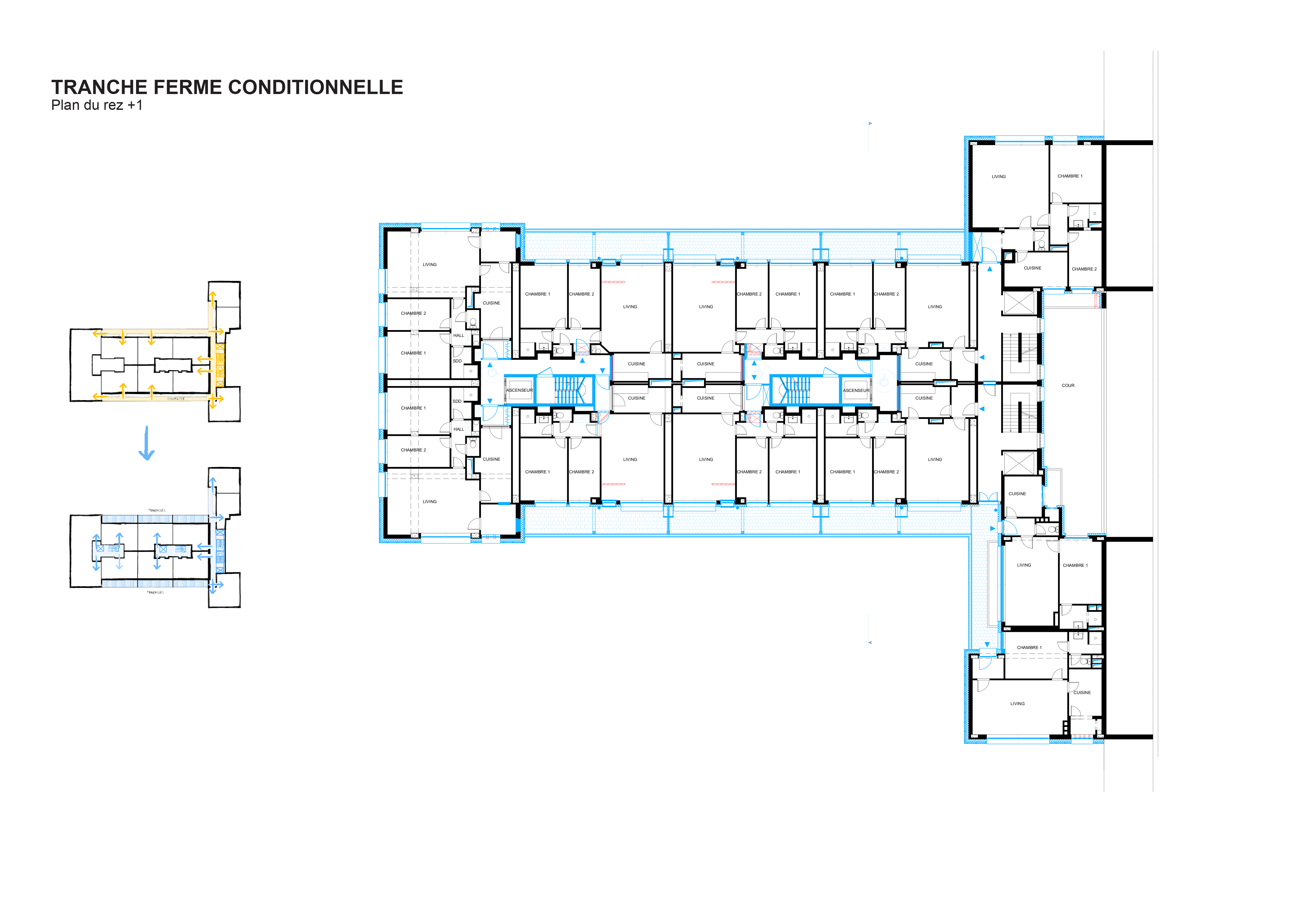 The renovation project for the Relais 2 building, concerns 57 residential units, mainly two-bedroom apartments. Built in the 1960s, the building’s envelope is outdated and no longer meets current energy efficiency and comfort standards, nor does it suit the configuration of its corridors, impacting the comfort and privacy of the residents.