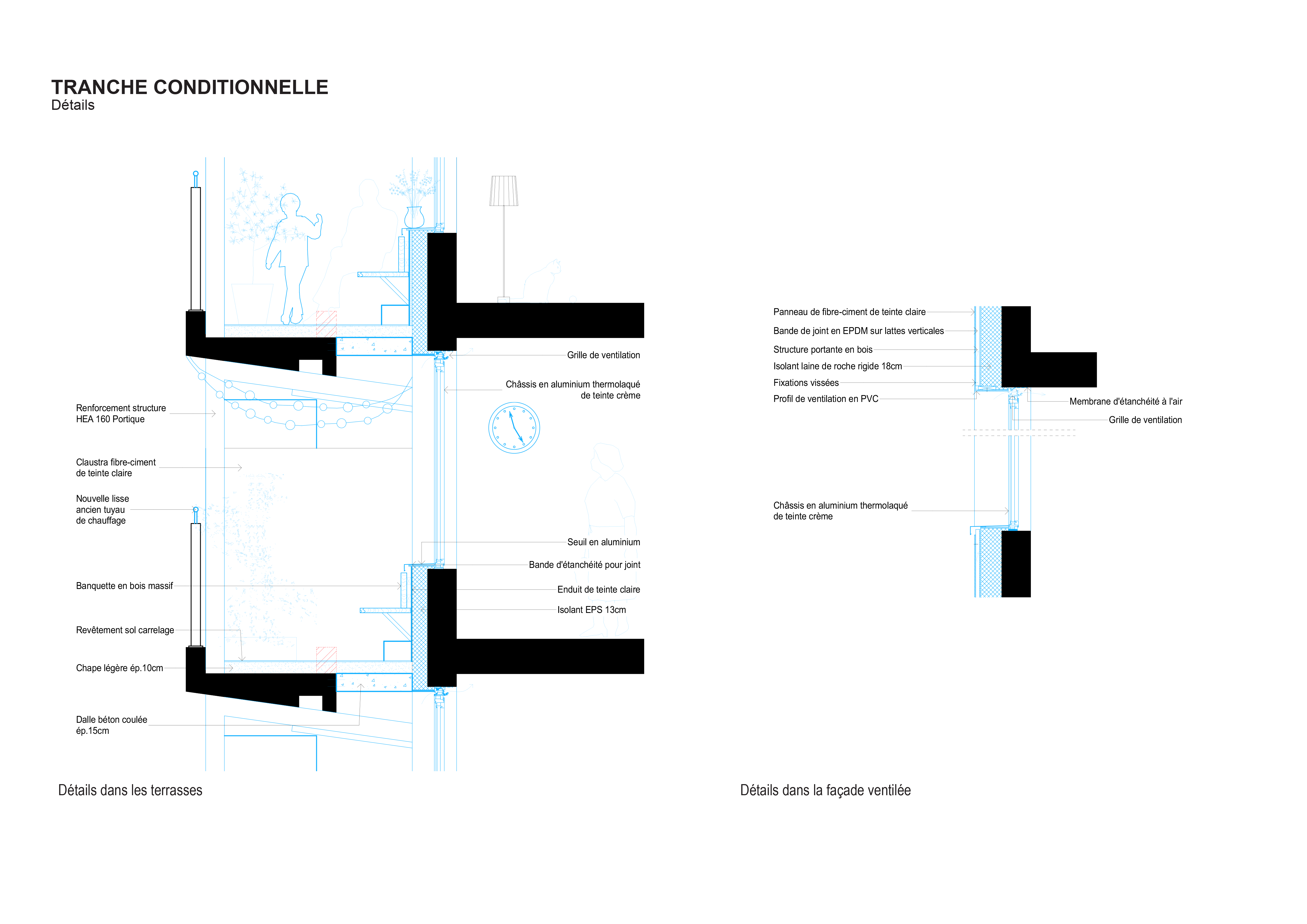 The project respects the existing architecture of the building while introducing functional improvements. The interventions are targeted and carefully thought out, with a focus on sustainability and integration into the environment. The materials chosen, such as the fiber cement cladding, provide both aesthetic and technical improvements while preserving the building's original spirit.